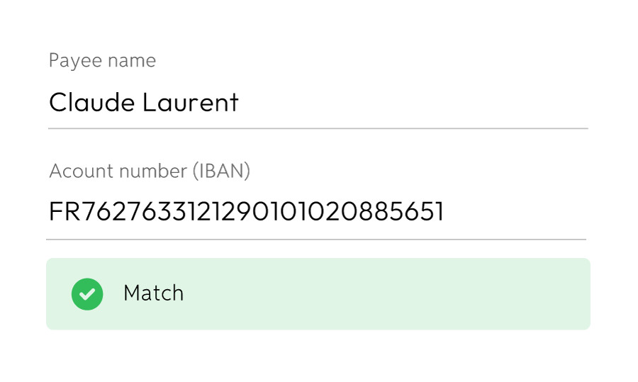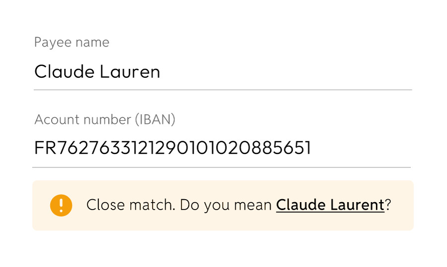 If you make a typo in the name, we show the name known to the bank. You can copy the suggested name with just one click.